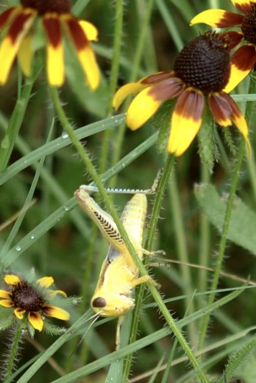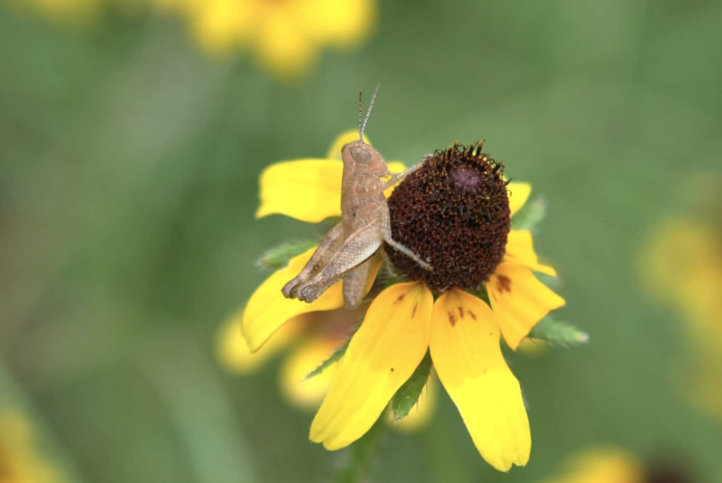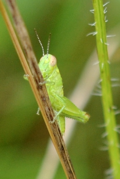 He has encouraged me to train for a track or field event so that I would enjoy spending the long days at track meets more. That’s probably not going to happen at the tracks, but I have developed a “field event” of my own. The fields at Little Piney are teeming with life! Walking through the field prompts a flurry of hopping, flying, buzzing, and rustling through the grass. So, dressed in long pants and leather boots to protect me from poison ivy, bugs, and snakes, my current favorite activity is exploring life in the field. I have my macro lens ready to photograph any little insect or critter that remains still long enough. Come to think of it, grasshopper photography is kind of like trying to film Ken running the 60 meters, only the subject is smaller and the cover more dense.