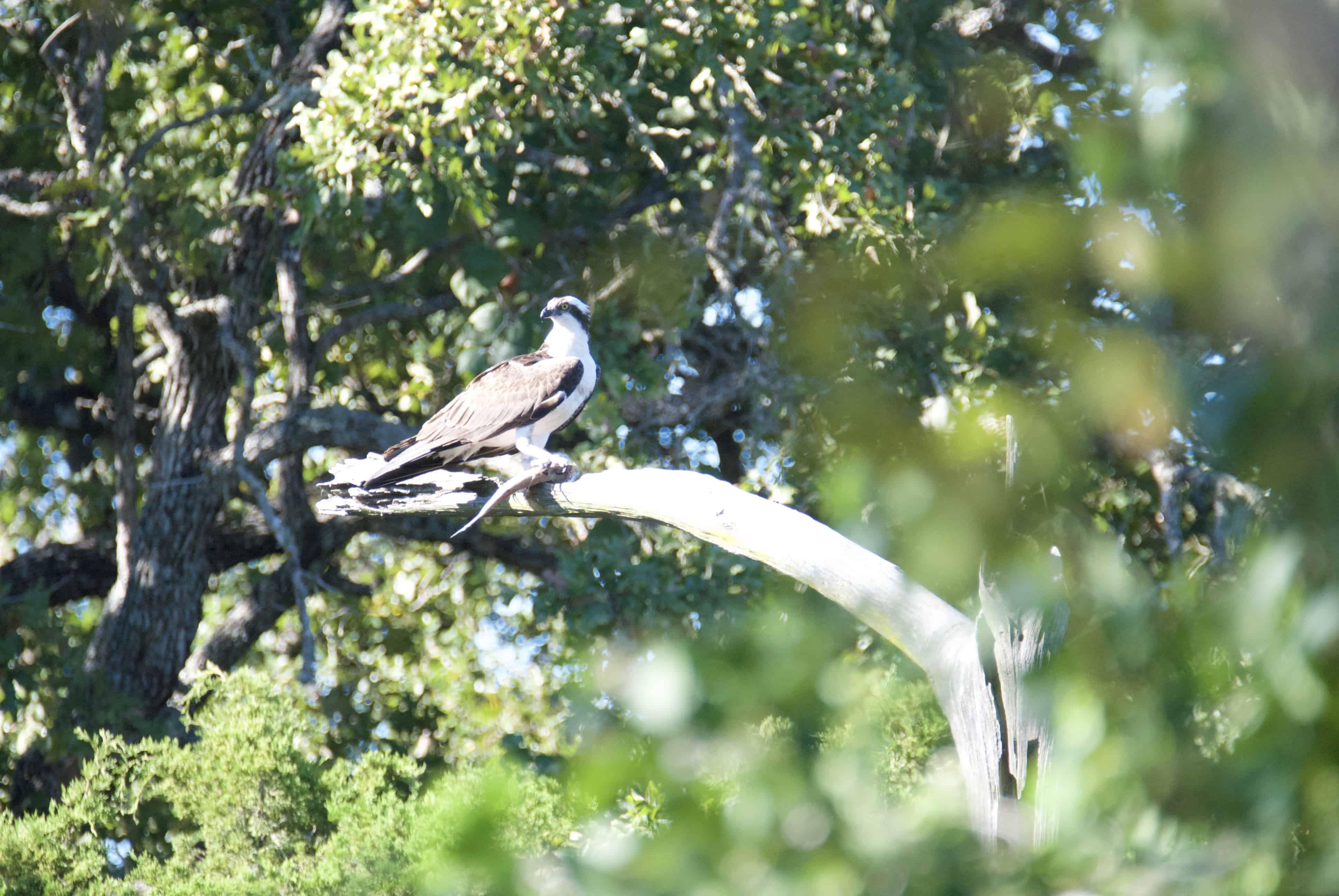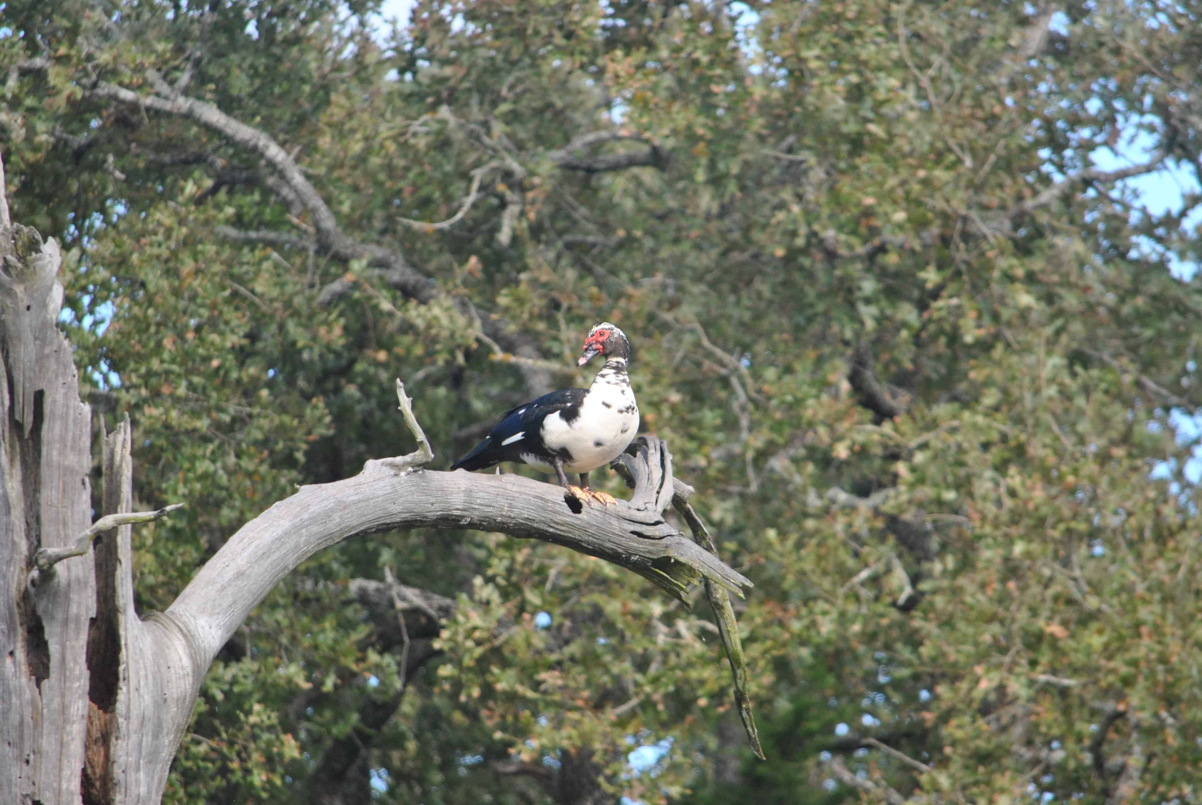 These two interesting birds were perched above the lake on different days–a Muscovy Duck and an Osprey with a fish in its talons.