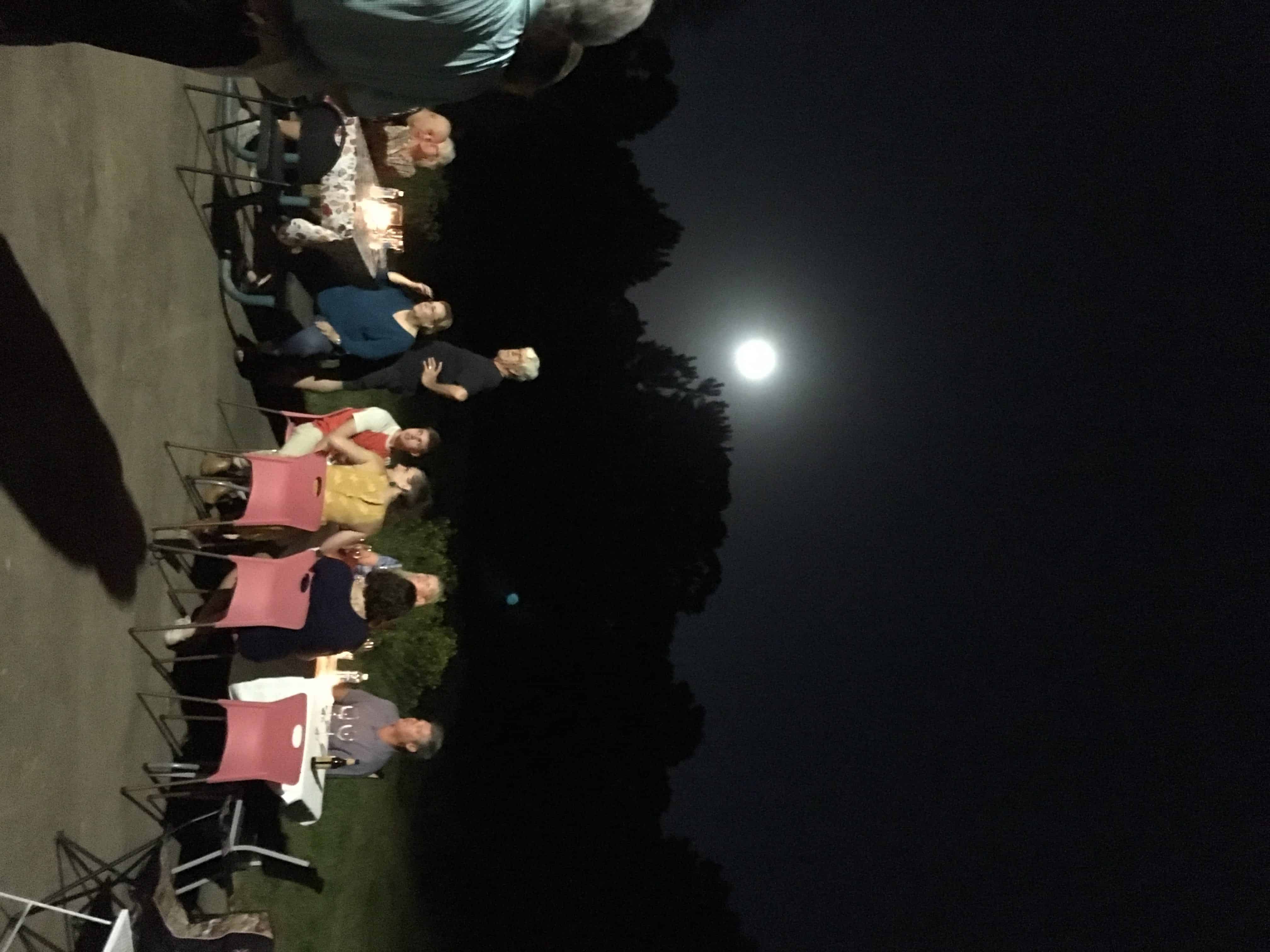 So, in fact, the party was a celebration of Little Piney and what it has meant to me for healing, for growth, and creative development, and it was perfect! Our guests were a mix of family, new friends, and dear old friends with an age span of 6 to 70’s. I cooked chili all day, and guests brought salad, cornbread and desserts. We had a wonderful band, Distant Lights, who surprised everyone with their amazing talent and sweet, positive energy. A full moon– a “super moon”–rose over the pond to illuminate the party and cast it’s glow like a blessing.