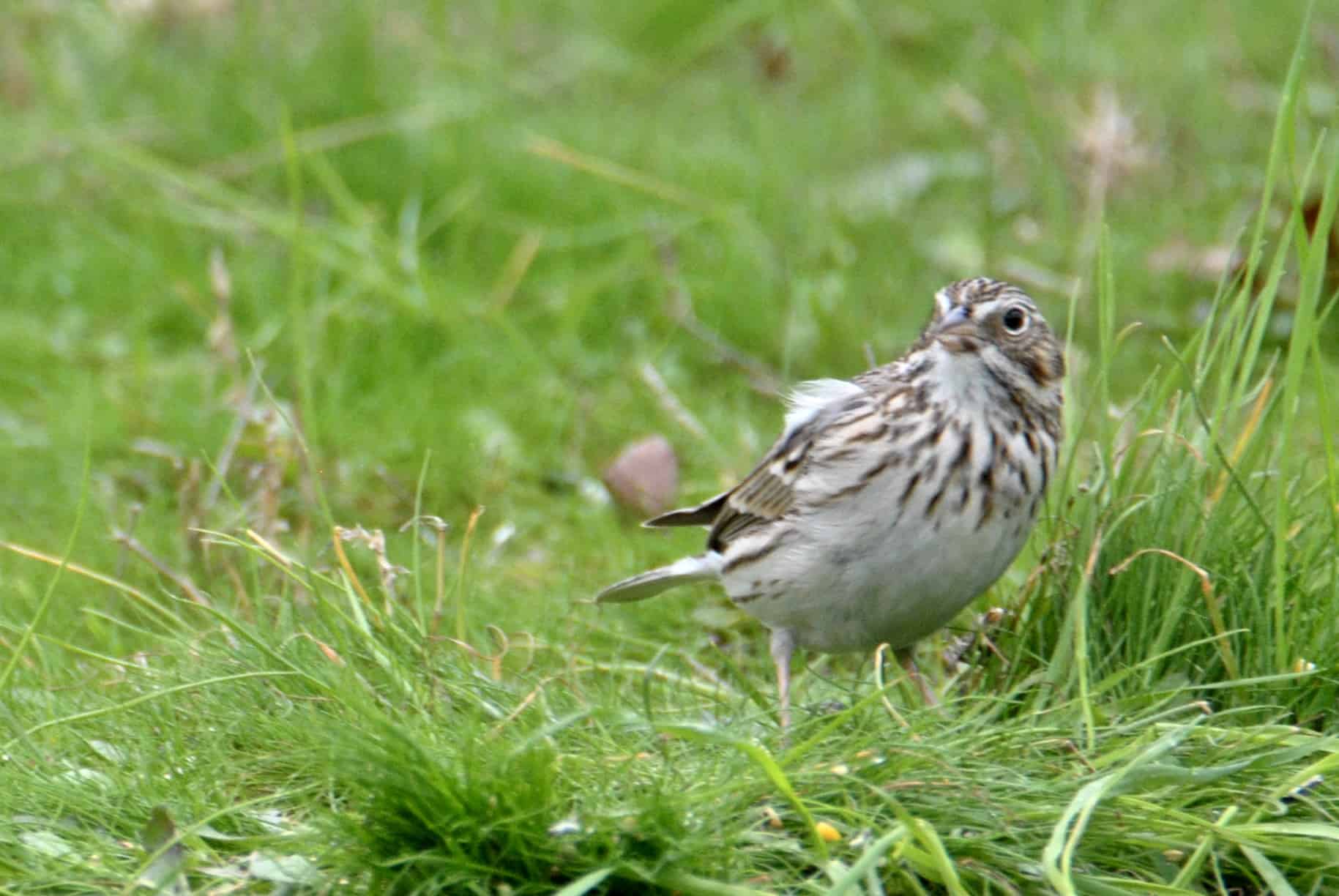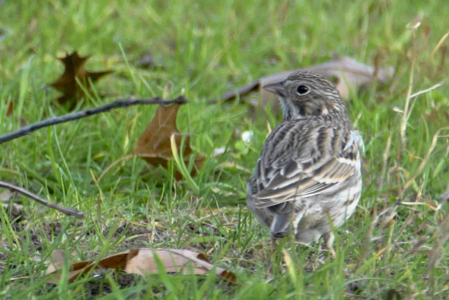 The Vesper also has a striped breast, but is generally paler in color. Look for the gray cheek patch to identify the Vesper Sparrow.
